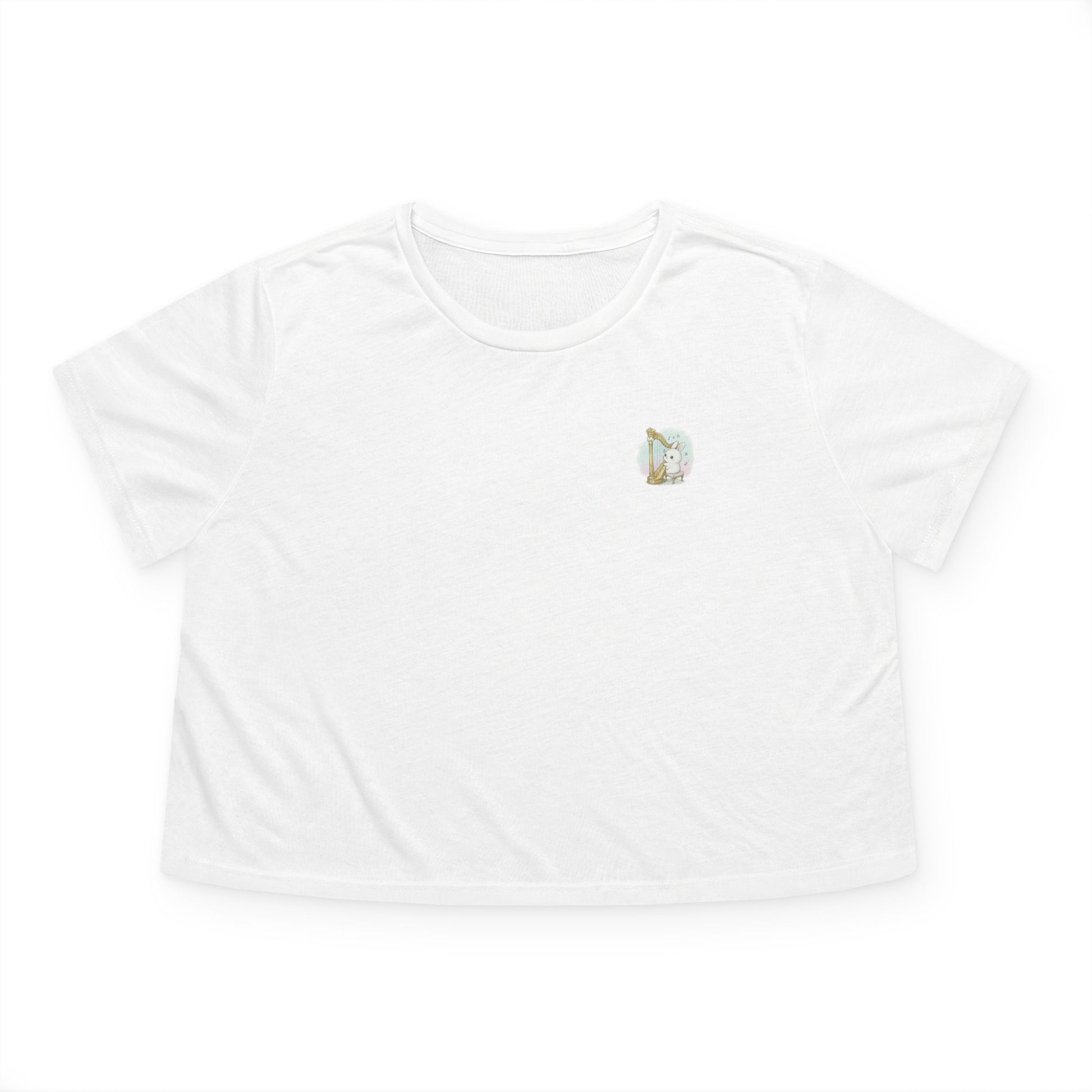 Kawaii Bunny Playing the Harp Graphic Flowy Cropped Tee